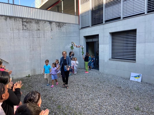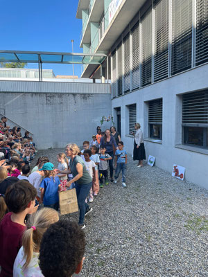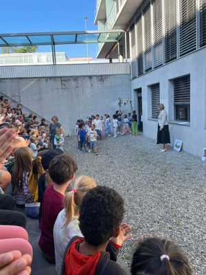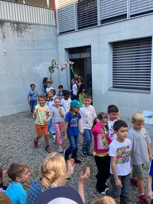 Am 27.08 starteten wir gemeinsam mit dem ganzen Schulhaus Zentrum das Schuljahr. Dabei wurden die Kindergartenkinder und Schüler und Schülerinnen der ersten Klassen mit einem grossen Applaus