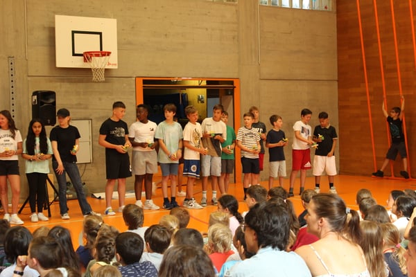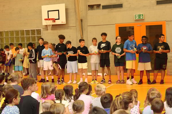 Bereits ist das Schuljahr wieder vorbei und es heisst Abschied nehmen von unseren Ältesten. Die Kinder der sechsten Klassen wurden mit einem tollen Chorauftritt und einem kleinen Geschenk der Fünftklasskinder auf ihre nächste, spannenden Reise geschickt. Natürlich wünschen wir allen Kindern ganz viel Erfolg und Freude bei ihren weiteren Schritten.