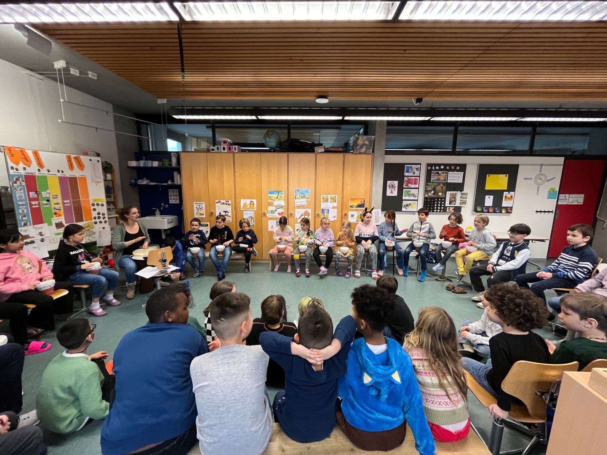Mit einem Köpfler sind wir in den Start unserer Projektwochen eingetaucht. Trotz trübem Wetter strahlte der Pausenplatz durch den tollen Gesang und die selber gebastelte Masken. Wir freuen uns auf die spannenden Projekttage.