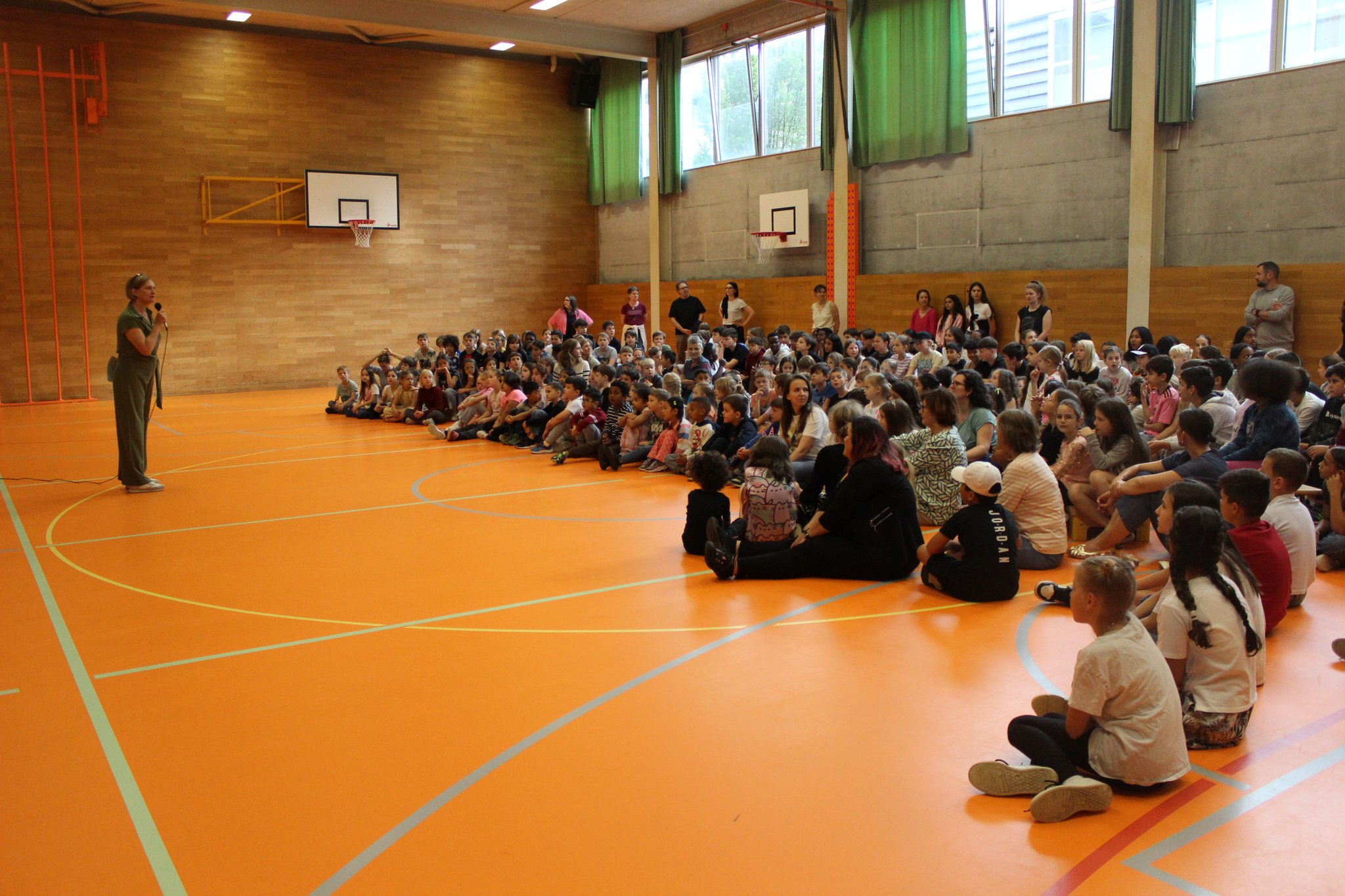 Amy begeisterte mit ihrer kraftvollen Stimme und erzeugte eine Atmosphäre, die die Zuhörer in ihren Bann zog. Von Anfang an war die Stimmung am Pausenplatz positiv und anfänglich ruhig und gelassen. Doch im Verlauf des Konzerts erreichte die Energie eine andere Ebene. Die mitreissende Musik verband sich mit den positiven Emotionen der Schülerinnen, Schüler, Lehrpersonen und auch mit vorbeigehenden Passanten. Die Kinder begannen zu klatschen, mitzusingen und sich im Rhythmus der Musik zu bewegen. Schülerinnen und Schüler bildeten Tanzkreise. Die Musiker waren inzwischen von einer jubelnden Menge umgeben.
